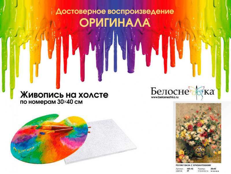 Оформление (аксессуары): В набор входит: холст на подрамнике, кисти, набор красок. Рамка в комплект НЕ входит.