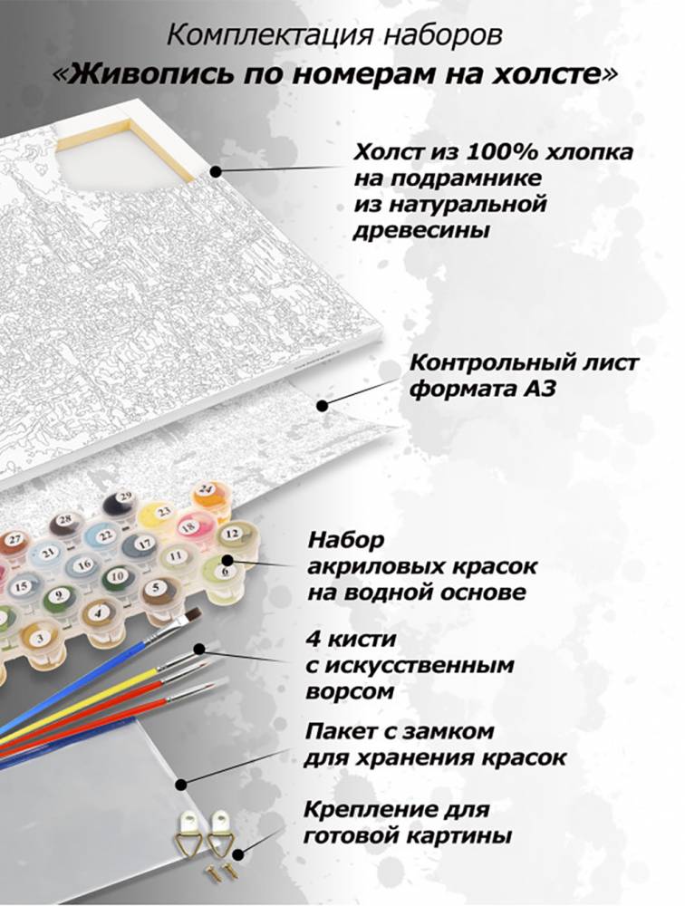 Оформление (аксессуары): В набор входит: холст на подрамнике, кисти, набор красок. Рамка в комплект НЕ входит.