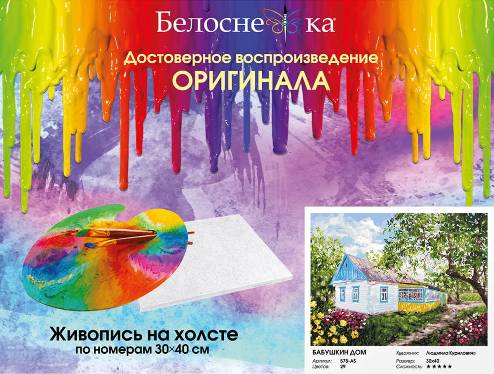 Оформление (аксессуары): В набор входит: холст на подрамнике, кисти, набор красок. Рамка в комплект НЕ входит.