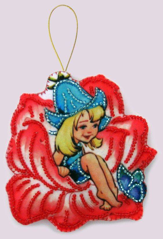 В набор входит: фетровая ткань с нанесённым рисунком, бисер (Чехия), игла, синтепон, шнурок, инструкция.