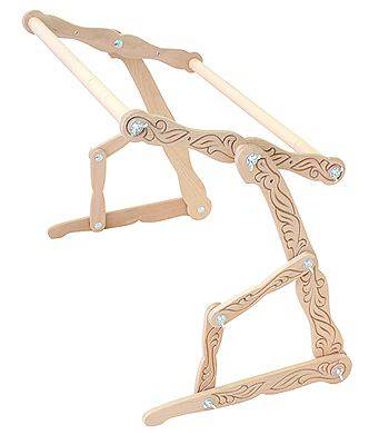 Диванный станок для вышивания крестом и бисером "Рукодельница". Также может быть использован как настольный станок для рукоделия. Станок сделан из бука (лёгкий, но прочный). Все детали станка имеют фигурный контур и красивую резьбу в русском стиле. Крепление канвы выполняется КРЕПКАМИ! Рамка с таким креплением канвы более прочная, натяжение вышивки получается значительно качественнее и ровнее. Размер рамки регулируется от 53х15 см до 53х33 см. Вышивая за станком, Вы чувствуете себя очень комфортно, не устает спина, не затекают плечи.