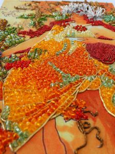 Состав набора: хрустальные бусины, трунцал, люрекс, бисер, ткань с нанесенной авторской схемой, подробная инструкция, игла.