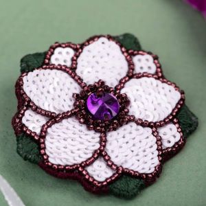 Также входит: Мулине, стразы, пайетки, фетр, заготовка для броши, картон