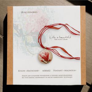 Набор для создания украшения в технике микровышивка. Лента-подвес (органза + вощеный шнур) длиной 40 см с удлинителем-цепочкой 6 см. В наборе используется 100% Лен Murano Lugana 32