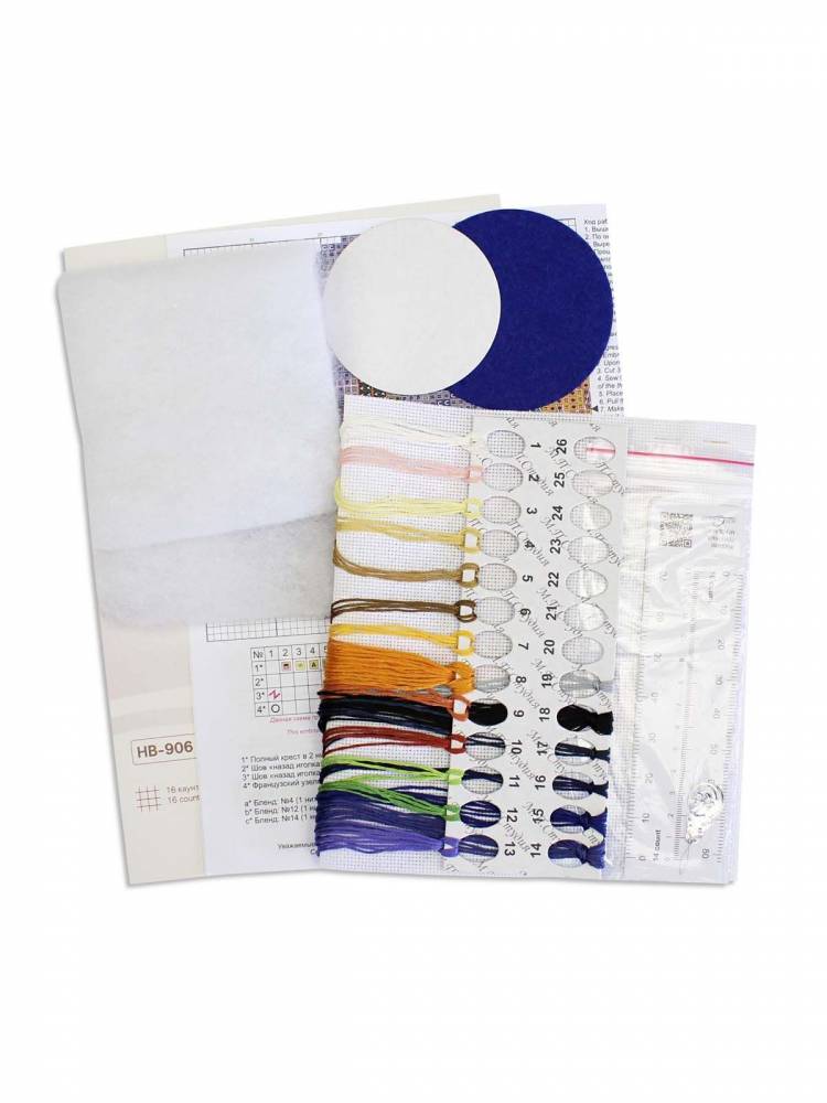Также входит: Синтепон, картонная заготовка, задник, вышивальная линейка, нитковдеватель