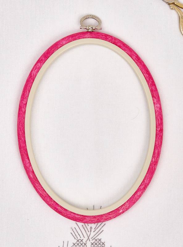 Размер: внутренний круг 12х16,5 см, общий размер 14х19 см. Каучуковые декоративные пяльцы с подвесом, без винта. Используются для вышивания (без перепяливания) и как оформление для готовой вышивки.