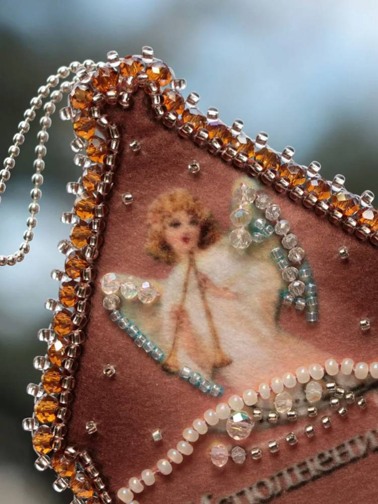 В набор входит: фетр с нанесенной авторской схемой, бусины “Хрусталь”, жемчуг (акрил), бисер (Чехия), ювелирный бисер ТОХО, цепочка, игла, картон, скотч, схема расположения бусин и инструкция по сборке с фотографиями.