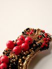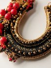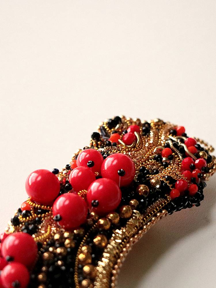 В набор входит: фетр с нанесенной авторской схемой, искусственный коралл, бусины “Хрусталь”, бисер (Чехия), стразовая цепочка, цепочка, металлические шарики, трунцал, канитель, 2 иглы, нить Титан, картон, двухсторонний скотч, схема расположения бусин, инструкция.