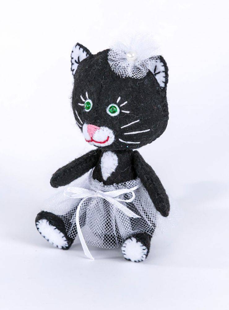 В набор входит: фетр различных расцветок, сетка для юбки и украшения, нитки мулине, бисер для глаз, атласная тесьма, выкройки, подробная инструкция по изготовлению куклы. Высота куклы: сидя - 11.5 см. Дополнительно Вам понадобится синтепон или синтепух.