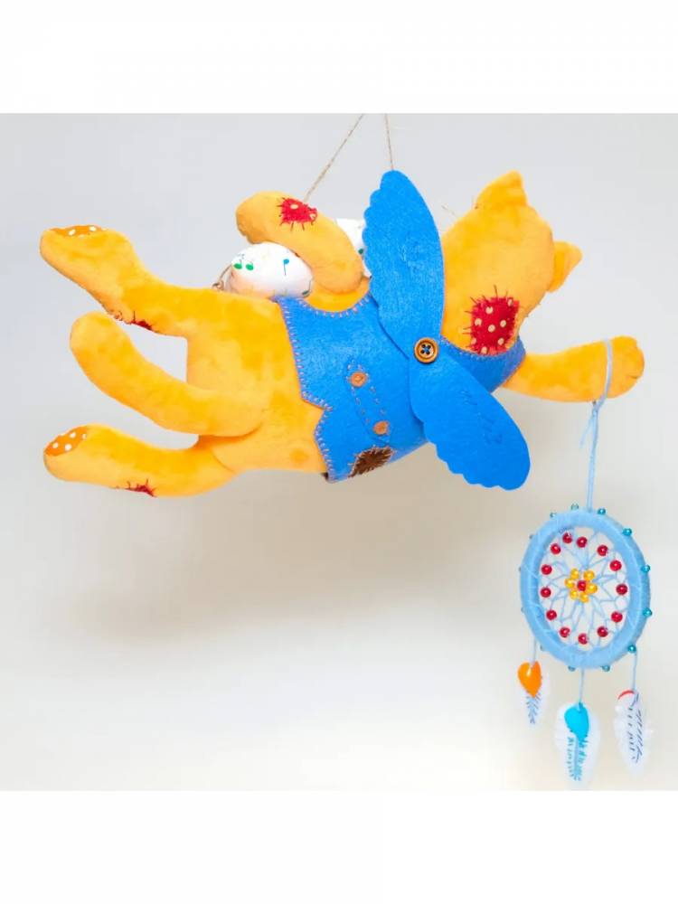 В набор для шитья игрушки своими руками Кот Ловец снов входят: ткань, фурнитура, нитки мулине, наполнитель для игрушек синтепух, выкройка и подробная инструкция. Набор упакован в подарочную крафтовую коробку. Высота готовой игрушки 12 см , длина 29 см.