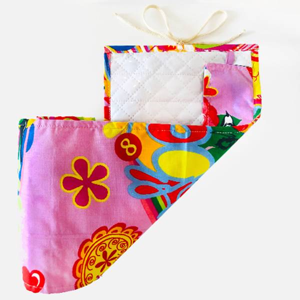 Органайзер имеет 18 кармашков. Внешняя оболочка изготовлена из хлопковой ткани с рисунком, кармашки выполнены из ПВХ, внутренняя оболочка изготовлена из 100% полиэфира, что обеспечивает органайзеру, прочность, износостойкость, в целом не очень подвержен загрязнению.