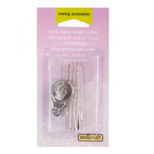 Иглы ручные для кожи/с треугольным острием 3/9 (5 шт.) + нитевдеватель. Материал: никелированная сталь